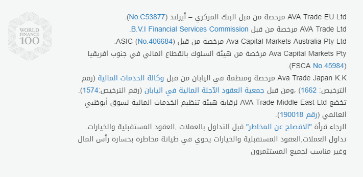- في الإمارات شركة AvaTrade مرخصة من قبل اسواق ابو ظبي العالمية ADGM.